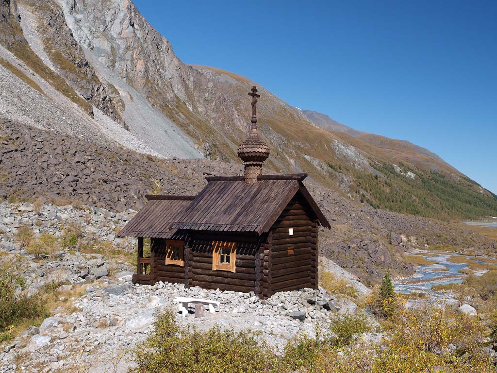 По дороге к Белухе есть прикольная турика в виде ворот Еще там есть часовенка с полным убранством внутри. Никто ее не охраняет. Река вытекающая из тающего аккемского ледника и питающая одноименное озеро Подъемчик к озеру горных духов досточно "веселый". Вода в принципе там не особо холодная. Хотелось искупаться. По берегу между камней лежал местами снег после снегопада, который прошел до нашего прихода на Аккем. Вообще говорят на перевале Каратюрек снега было по колено, но когда мы шли он уже расстаял. Жаль Собственно озеро горных духов Долина Ярлу и Каменный город. Место паломничества всех рериховцев. Рерих искал в этих местах вход в Шамбалу. Считается что г.Белуха равноудаленная от 3х океанов является северным входом в Шамбалу. Чуть выше этого каменного города есть что то типа лабиринта из камней. (Снять я его уже не смог поскольку аккумуляторы мои уже были на нуле Неподалеку течет ручей. Там розовый песок из скальных осыпей. От этого вода качется тоже розовой. -------------------- |