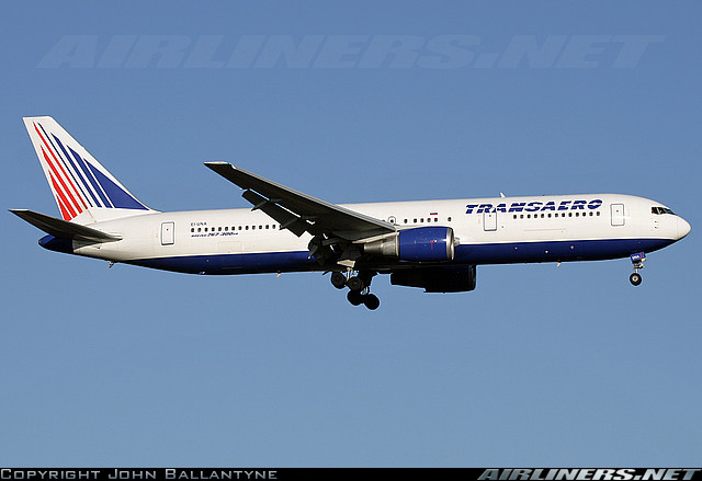это один из вариантов компоновку ВС Б-767 а/к Трансаэро, а именно 26 (б/класс)/98 (эк/класс 2 салон)/92 (эк/класс 3 салон). Также у них есть компоновки 12/119/105 и 12/117/106, которые скорее всего и будут совершать полёты к нам (но не факт), т.к. в них меньше мест б/класса, который у нас не очень пользуеться спросом, и больше общая пассажировместимость на 19-20 кресел, а в более востеребованном эконом классе на 23-24 места ... По изображенному на втором фото ВС (запечтленный непосредственно у земли перед посадкой) - это Боинг 767-300ER, принадлежащий а/к Трансаэро борт. рег. № EI-UNF (к сожалению фото не очень большого разрешения и буквы немного смазаны) и его компоновка 12/117/106. -------------------- «Ад и рай – в небесах», - утверждают ханжи.