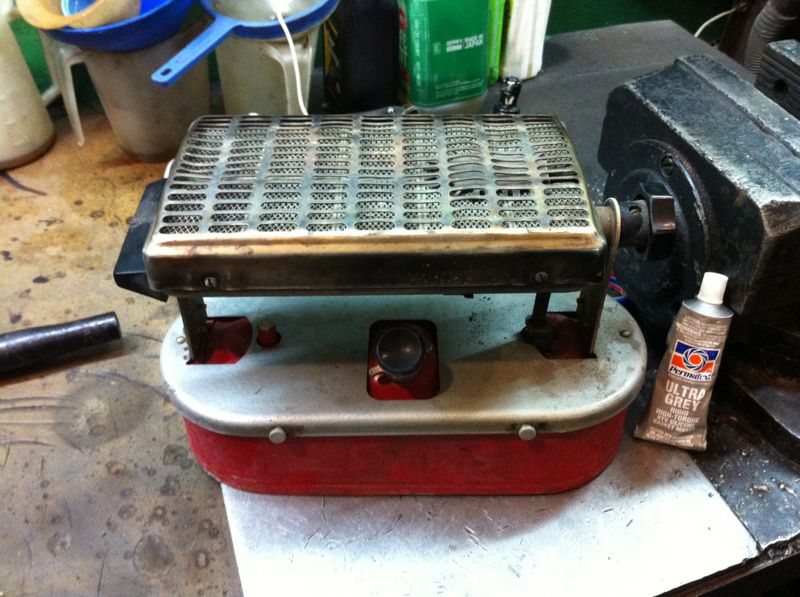 Приспособились на улице прогревать его бензином и газовой горелкой. Короче подход к нему нужен. заливаем калошу, чтоб не вонял. Снизу бачок с топливом, сверху комфорка. Накачал, открыл, зажег. Но это в теории. А так пока раскочегаришь его успеваешь и согреться и добрым словом его вспомнить))) Спасибо! — VIN*49
