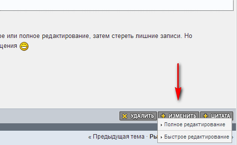 КИЖУЧЁНОК, не надо несколько раз нажимать кнопку "Отправить". Хотя, забавно А еще можно нажать на кнопку "изменить" под опубликованным сообщением и выбрать быстрое или полное редактирование, затем стереть лишние записи. Но редактирование (изменение) как я понял доступно всего неcколько минут после отправки сообщения Сообщение отредактировал Roma}{a - 30.1.2014, 23:31 Спасибо! — КИЖУЧЁНОК