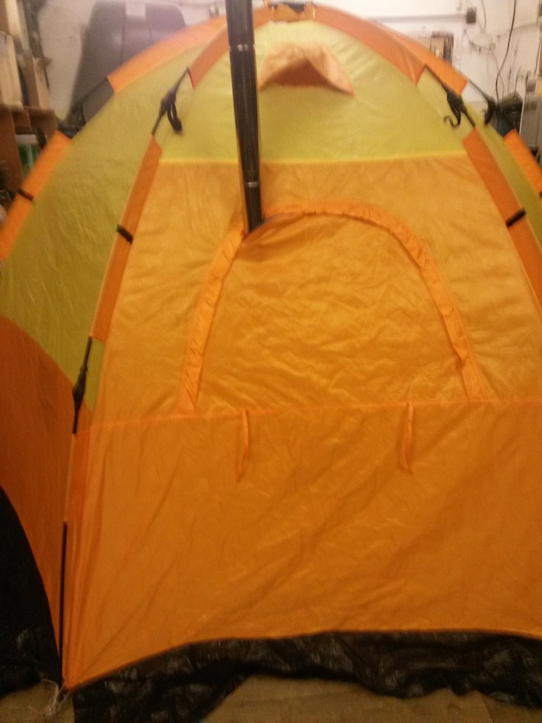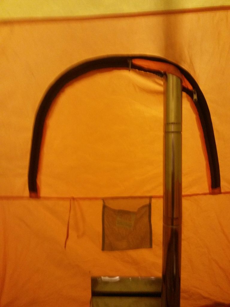 Пока что имеешь неприспособленную палатку, которой все равно где делать бырку под жестянку для трубы. Сделай ее в правильном месте.