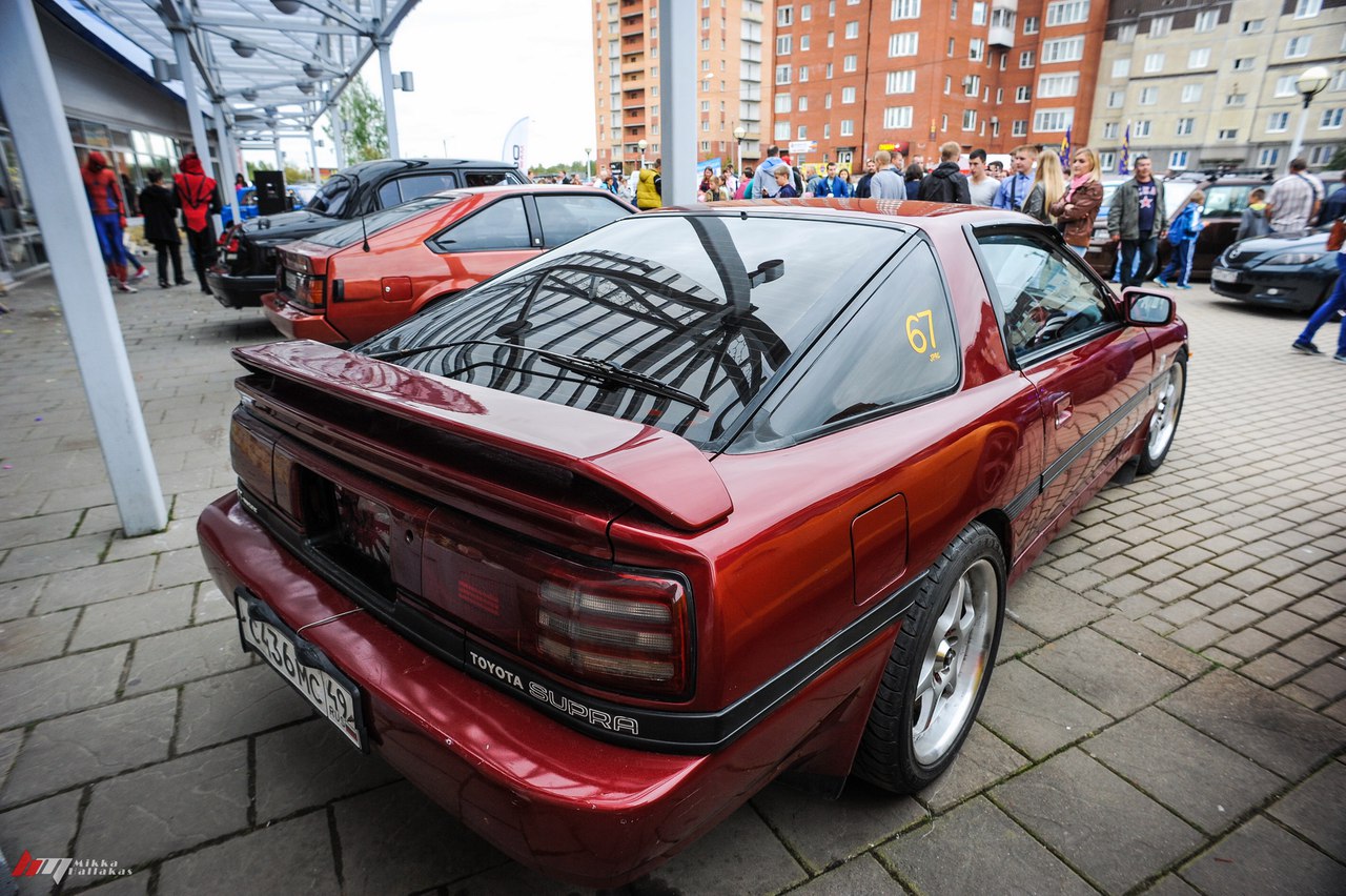 Долго я не мог сформулировать мысли в текст. После первого моего описания прошло много времени, но я до сих пор владею Супрой(или она мной?), поэтому продолжаем. Тект сырой, просто мысли. Ходовая. Подвеска на А70 ни чего сверхъестественного не представляет-на обеих осях независимая, на двойных поперечных рычагах со стабилизатором. Один нюанс все таки есть — на машине 86г выпуска верхние рычаги алюминиевые и на поздних версиях стоит TEMS! Это подвеска позволяет хорошо и с комфортом переживать сход асфальта каждую весну вместе со снегом на дорогах нашей страны. На 16-х колесах ямки не так жестко чувствуются и в целом автомобиль четко реагирует на руль. На 17-шках и выше дорожное покрытие улиц г. СПб старается вытряхнуть твой позвоночник в трусы. Видимо инженеры пытались совместить спортивные качества спорт купе и вальяжность седана премиум сегмента тех лет. От части им это удалось-на Супре можно с комфортом передвигаться на дальние расстояния(если ходовая у вас в стоке), но также можете смело заехать на трек день с компанией «горячих» хэтчов. И вот что интересно, при минимальной доработке подвески, а достаточно поставить пружины по жестче и заменить стабы, можно рассчитывать на уверенное прохождение поворотов. С такими минимальными вложениями вы не сможете добиться хороших результатов от так популярных заднеприводных праворучек, как маркообразные. Развесовка господа, развесовка. В Супре вы сидите практически на задней арке, и рейка спереди двигателя. Автомобиль изначально проектировался для гонок. Ралли. кольцо.... Многие меня спрашивают(жена главный ведущий этого опроса), А для чего вам Супра? Большинство ответит, что это мечта детства. Что он ее видел еще на плакатах у друга дома и т.д. и т.п Есть еще контингент людей которые парируют такой вопрос фразами типа-"Это же культовая тачка!" ПФФФФ! Так для чего вы колхозите на них запчасти от "таза"? Зачем красите пластмаски в салоне в какой-то безумно отвращающий ярко желтый, зеленый или банально серый цвет? Зачем вы…, да я могу на 3 страницы расписать то кол-во тупого "тюнинга" который я встречал на Супре А70. Самый главный мой вопрос-Зачем многие передвигаются на ней зимой? Во первых я не вижу смысла — раскрыть весь потенциал на зимней дороги не удасться, а тошнить 60 км\час можно и на Короле. И самое главное-реагенты! Они жрут кузов с такой скоростью, с какой я пью пиво в пятницу вечером в пабе. Я знаю единицы людей для которых Супра действительно была мечтой и когда эта мечта исполнилась, то они ее превратили или до сих пор превращают в ту единственную машину на которой будет в кайф выехать в солнечный выходной день. Мой ответ. Просто прокатиться по центру города, просто скатать на Трек-день. Просто… P.S. Да, к тому же принимаем во внимание реакцию других автомобилистов и пешеходов. Бесценно. Как сказал Кларксон:-" Рядный 6-ти цилиндровый двигатель, обычная коробка передач, задний привод и минимум электроники-это первая страница первой главы в первой книге про автофилию))))" -------------------- Возраст это лишь цифра, она не определяет ум человека и его взгляды на жизнь. Всё зависит не от прожитых лет, а от пережитых обстоятельств[size="2"][/size]