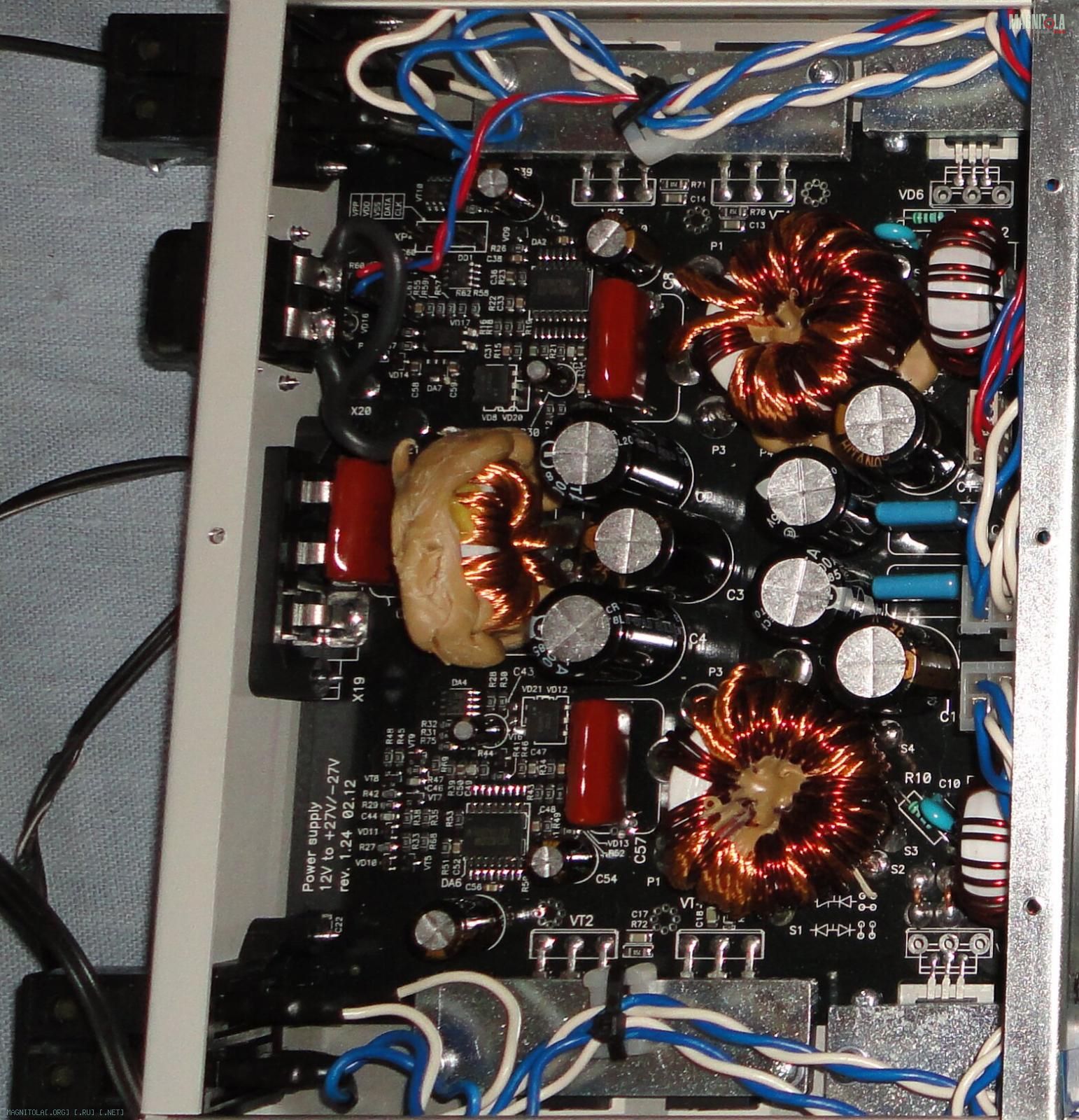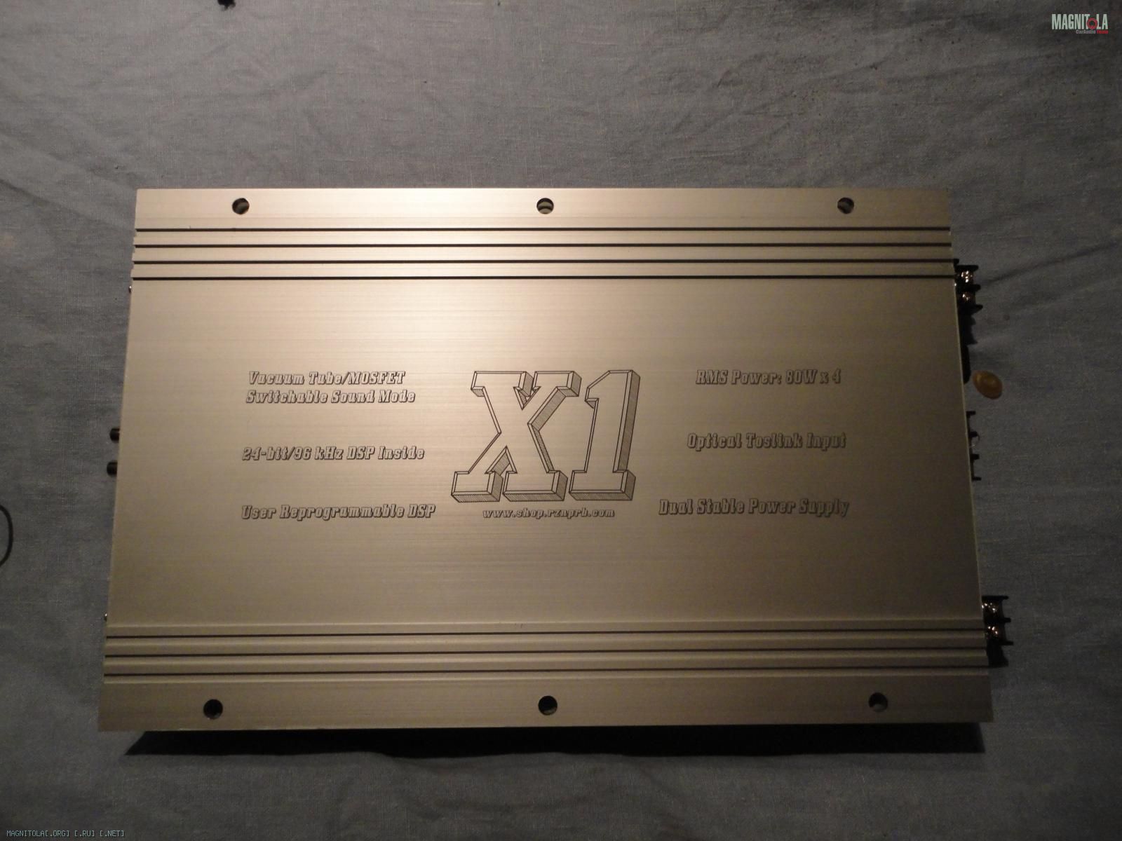 Технические характеристики автомобильного усилителя Х1: Количество каналов 4 Класс работы усилителя мощности АВ Выходная мощность (RMS) 4 x 80 Вт Цифровой оптический вход Toslink (SPDIF/PCM формат) есть Аналоговый вход (RCA) есть Встроенный процессор цифровой обработки сигнала (DSP) есть Переключаемые режимы «Лампа» - «Транзистор» есть Прямое прохождение сигнала (Direct) есть АЦП, ЦАП (AD1702 от ADI) 24 бит, 96 кГц Программные фильтры (второго порядка (Баттерворта)) есть ФВЧ*(HPF) 10 –150 Гц ФНЧ*(LPF) 11 – 20 кГц Входное сопротивление аналогового входа (RCA) 10 кОм Диапазон воспроизводимых частот усилителем мощности 10 – 50 000 Гц Отношение сигнал/шум, не менее 90 дБ Коэффициент гармонических искажений (THD), не более 0,02 % Коэффициент интермодуляционных искажений (IMD), не более 0,03 % Номинальное напряжение питания бортовая сеть (+12В) Ток простоя 2 А Предохранители 2 х 20 А Защита от перегрева есть Защита от постоянного смещения на выходе есть Защита от короткого замыкания есть Температурный диапазон –40 ... +80 оС (до срабатывания защиты) Габаритные размеры 431 х 248 x 55 мм Вес 5 кг сайт разработчиков: ссылка доступна только зарегистрированным картинка инструксьон
