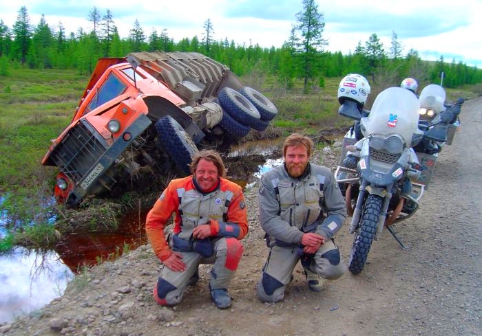 . Эван Мак Грэгор, актёр "Звёздных войн". Падаван, Оби Ван Кеноби. Это они на мотоциклах всю Россию проехали. В Магадане тоже были. В гостинице ВМ центр останавливался.
