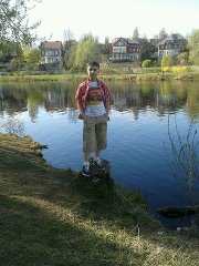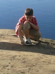 На рыбалке.бабушка и внук! Удочку тоже просит подёргать.