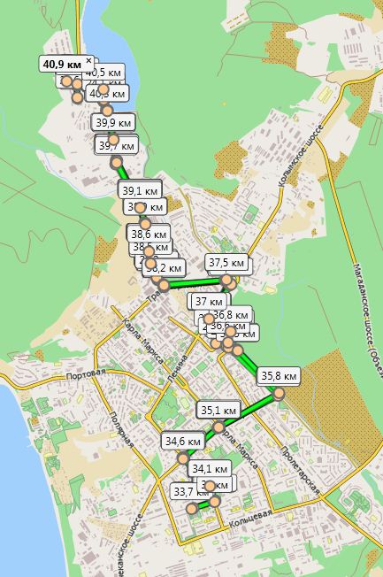 Пишите километры, что вы пишите вообще? Я знаю от Лукса до Пионерного очень много путей, и Строительный, это мкр. или магазин? А если ещё "что-то придумать", то можно окончательно потеряться в догадках..