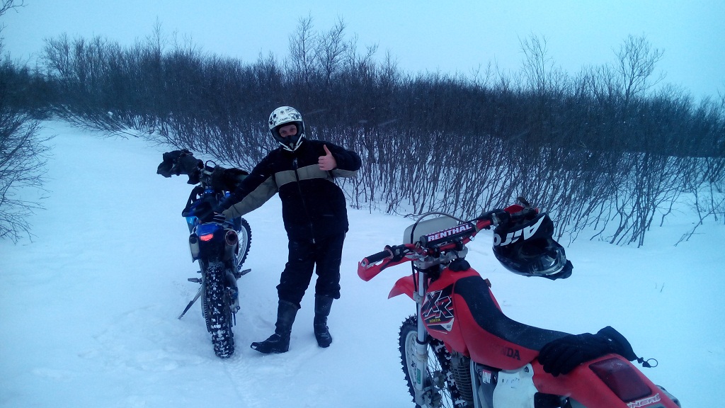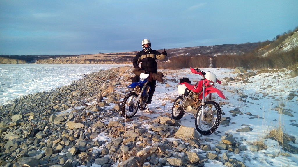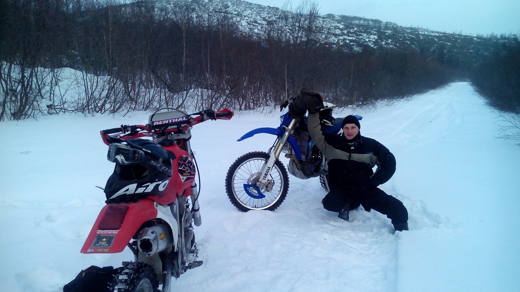 Сегодня лайтанули немного с Яхой, погода классная, но холодно, около -18 градусов было ,маршрут был таким: От гаража полетели на танкодром, там малость покуралесили, поднялись до трамплина( что на подъёме в чашу Марчеканки), далее спустились и через очистные, 3-й микрорайон,мост ниже Ани поперли вдоль Магаданки к морю. Потом по берегу на горняк, через мост и опять по берегу до конца лицензионки, пофотались малость по дороге, потом ломанулись на Дукчу и через сопку на 13-й км. Тут я на подъёме поставил мот в свечу и воткнул его жопой в сугроб в перемесь со льдом потом сгоняли на Отсыпку и собственно на этой положительной ноте решили разъезжаться по домам. Всё-таки зимой прикольно катать, сегодня мы как летом с Яхой "жарили", Дукча-Горняк и обратно- так вообще скоростной трек получился Ну и немного фото Ну и видео чуть чуть Сообщение отредактировал DANger - 7.12.2014, 11:21