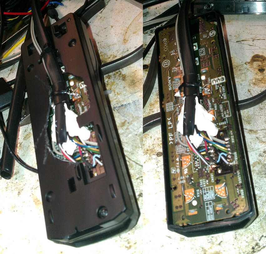 А тыкать под кресло пультом както не алё.., Вот 2,5 метра вынесена панель., перемен в работе подопытного не обнаружено., Затевалось так, чтобы не вносить изменений в сам ресивер, и воткнув такуюже панель, (если чё) получить первоисходное состояние... К тамуже это удобство в мантаже., и если что ремонтопригодности сего. Специально не замазываются места пайки, чтобы обнаружить обрыв если что, ну или по крайней мере пока не попалось прозрачной какой дряни, ну или не моё это уже дело. -------------------- Почта: maykov@mail.ru ...... icq: 610 723 439 ...... WatsApp 89140319611