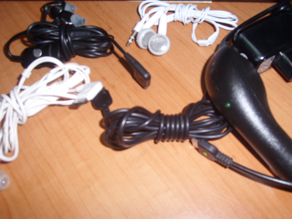 От Самсунгов прошлых лет: две пару наушников, авто и 220В зарядки. Наушники с разъемом "мини-джек"