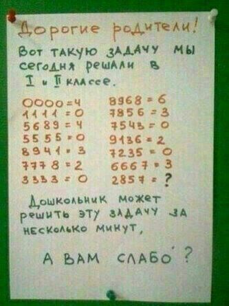?????? Нужно считать количество кружков в цифре. В 8 - два кружка, в 6/9 - один, 5/7/1 - нет кружков. Сообщение отредактировал Svenson - 14.10.2014, 14:51 Спасибо! — Filmor