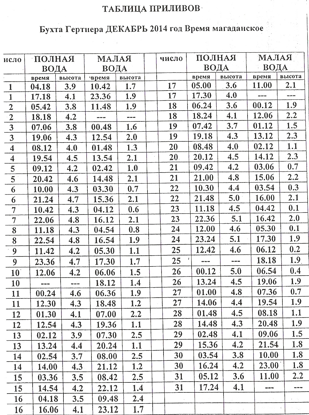 У кого нибудь осталась таблица приливов на декабрь?