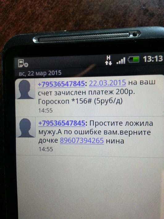 Видимо совсем на идиотов расчитано-ведь элементарно посмотреть можно свой баланс и увидеть,что никто не пополнял. Да,действительно весенние веселушки начинаются в некоторых местах... |