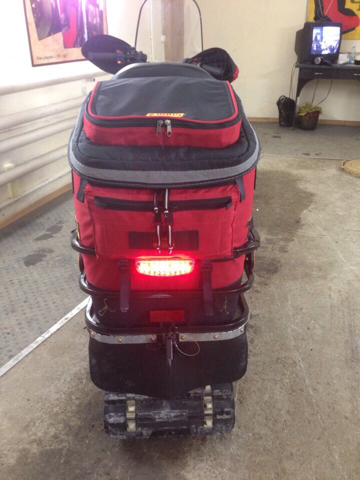 В рундук помещается термос, кружка, харчи, удочки, прикормка и еще много места остается. Бур и кресло закрепляю на внешней подвеске. Остается еще место для баллона с газом литров на 5-10. В перспективе - палатка, которую буду возить на спине вместо рюкзака. У нас тут любители лова «мини дачу» устраивают на льду: палатка, в ней керамический газовый обогреватель, чайник можно греть, пельмени варить ну и прочей ерундой заниматься, когда за бортом -30. Совсем уж на дальнюю перспективу – купить сани. Сам снежик по паспорту берет нагрузку 150 кг и может тащить на прицепе 100 кг. Фаркоп есть. Так можно будет и напарника с гармошкой на прицепе возить, а то совсем «мечта эгоиста» получается. Спасибо! — Военком