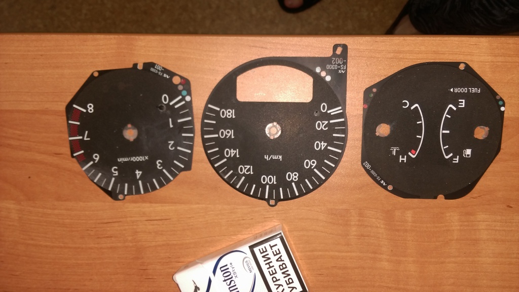 Вообщем решил запилить диоды в приборку. Разделю на 3-4 темы по продолжению работ, так как работы ведутся в рабочее время =)))) Дано: Контрактная приборная панель от субаря, а мало ли, эксперименты закончатся печально. Диоды, разные, плюс сопротивления - целая "пулеметная лента" из сопротивляшек. И еще не мало важно, когда есть знакомый авто-электрик от бога. Первое фото, сама приборка. Взял от турбо. у меня атмо, по дисплею разница в значке "ECO" и "Power", х3 по разъемам подойдет или нет... И так, поехали.. Разбираем приборку, далее три трафарета откладываем в сторону, переворачиваем. Они все покрыты зеленой хренью - краской. Берем обычный ацетон/растворитель, оттираем до результата как на спидометре. Немного конечно кхерится внутренняя часть трафарета, но это не страшно. Все что сделано в Япии - навечно, нежеле чем у нас. Затем сверлим дырки под диоды, 3-5мм. Прикручиваем их, паяем. За что спасибо Артуру, авто-электрику. Я ему задачки подкидывал разного уровня сложности... Справился на ура. На фото видна лицевая часть и тыловая часть всех мероприятий... Осталось только спилить головки диодов, чтобы трафарет плотно прилегал к основе. Пока что сделали тахометр и спидометр, спидометр получился ярким, а вот тахометр малость подвел... -------------------- Я организую свой турнир по warhammer 40000, с Блэк Джеком и шлюхами...