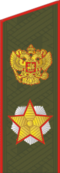 Генерал армии Маршал Российской Федерации Указом Президента Российской Федерации от 22 февраля 2013 года генералам армии были возвращены введённые в 1974 году погоны с одной большой звездой Сообщение отредактировал Barma - 11.5.2015, 12:35 -------------------- |