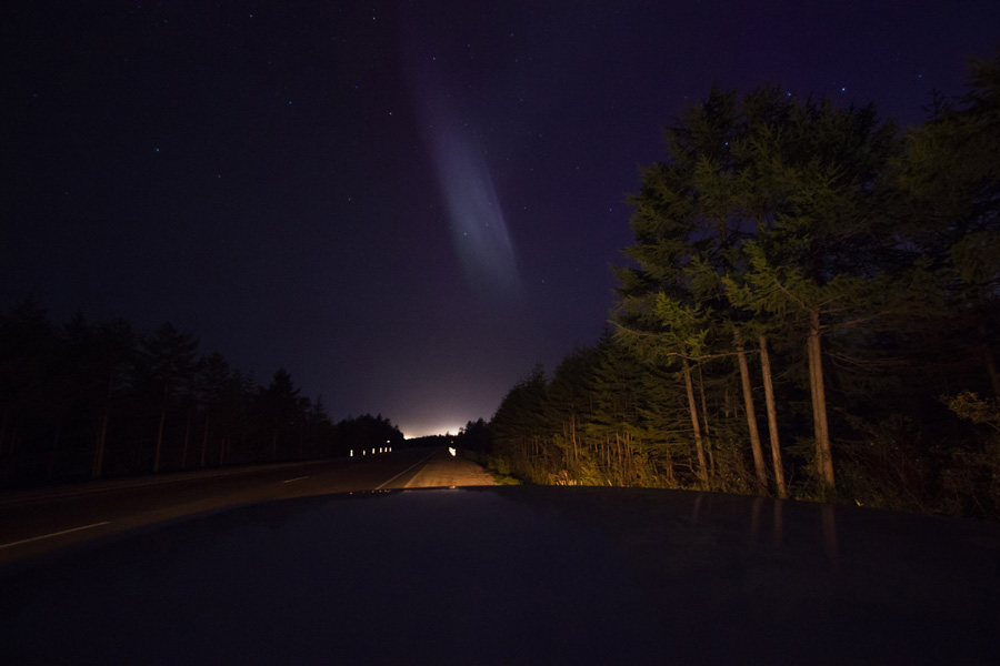 Повезло вчера. Поехал на Стекольный и заметил, что небо как то необычно светится. Остановился посмотреть, а это оказывается Северное сияние. Позже оно разыгралось так сильно, что всполохи достигали высоты в 90 град и были над головой. Таких вспышек я еще никогда в Магадане не видел. Зрелище не забываемое. Менялось все очень быстро, действительно, настоящая бомбежка атмосферы.