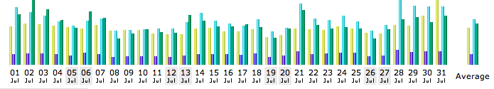 Уникальных посетителей — 5 572 Всего посещений за месяц — 29 828, по местным меркам это не очень много, но достаточно. Меньше всего к нам зашло 19 июля — 729 человек. С конца июля количество посещений резко возросло и уже 31 числа пришло 1631 человек. Больше всего посещений обычно в понедельник, а чаще всего люди сидят на форуме с 9 до 11 часов вечера. |