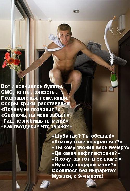 СМС, понты, конфеты, Поздравленья, пожеланья, Ссоры, крики, расставанья, «Почему не позвонил?» «Сволочь, ты меня забыл!» «Гад, не любишь ты меня!» «Как гвоздики? Что за хня?» «Шуба где? Ты обещал!» «Клавку тоже поздравлял?» «Ты кому звонил весь вечер?» «Да какая нафиг встреча?» «Я хочу как тот, в рекламе!» «Ну и где подарок маме?» Обошлось без инфаркта? Мужики, с 9-м марта! Сообщение отредактировал lev 43 - 9.3.2016, 13:59 |