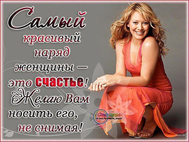 Пускай волнуется душа, От комплиментов станет жарко И закружится голова Пусть сердце наполняют радость, Гармония и красота, Из милых глаз уйдёт усталость И не вернётся никогда! -------------------- Жизнь надо прожить так,чтобы голуби,пролетая над твоим памятником,терпели из уважения.