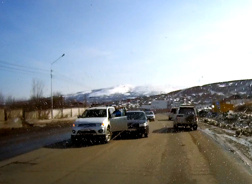 Вот какая необходимость, заставляет водителя белого кроссовера, ломиться через двойную сплошную (да ещё и ехать на красный свет)? Но это ещё "легкий" случай. В этом же месте не редко наблюдаю, как особо умные, совершают подобные манёвры в час пик. При этом ещё и возмущённо сигналят, чего это мол, их не желают пропускать! Один такой, даже кулаком мне махал в окошко и что-то кричал (наверное, всё лобовое стекло себе слюнями забрызгал)...