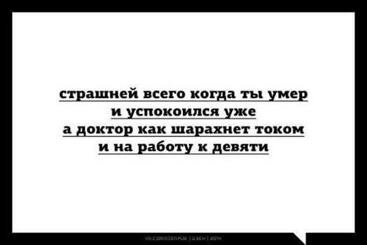не помогут листья подорожника после встречи тела с внедорожником **** тонкими ломтями тело гошино на него с балкона арфа сброшена *** с мультиком кассету я нашёл в шкафу мультика там нету голые все фу *** намотав на шею с ёлки серпантин празднично свисает с люстры валентин *** думал ли барашек нежась на лугу стать ингредиентом сочного рагу *** в жизни всё паршиво но тепло в душе в вале валерьянки триста грамм уже *** от копчёных ножек стейков и свинин в гроб не помещался мёртвый гражданин *** -------------------- |