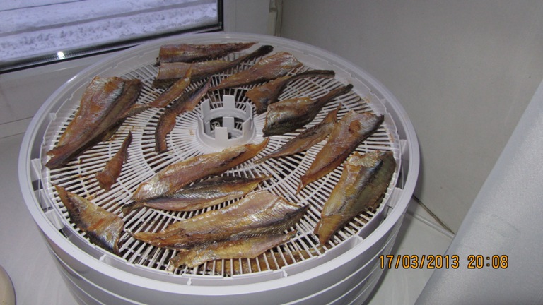 Утром разложил, включил, вечером собрал урожай. Но я не целиком сушу, а делаю филе. Потом наслаждаюсь без отрываний голов, кишёк, шкура отходит как фантик. Фото старые. Раньше я потрошил и разрезал рыбку на спинку и брюшки. Сейчас наловчился так: вынимаю хребет и рыбка как раскрытая тетрадь, плашмя на поддон. -------------------- |