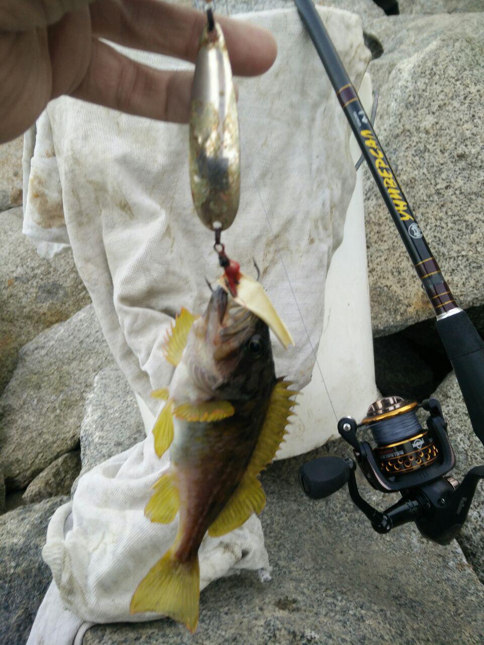 в 7-м часу вечера на камнях за пожаркой в Нагаево вполне себе ловилось. погода - сказка. с наживкой не заморачивался- подцепил банальное сало. поначалу не клевало вообще. а вот на соседей больно было смотреть: справа мужик тягал одну за одной, слева - пусть с перерывами, но тоже регулярно. вынести это безобразие не было никакой волевой возможности. поэтому я переместился ото всех подальше и к пожарке поближе, и дело пошло, только забрасывать надо далеко. под 9 часов стабильно пошла хорошая такая, "товарная". но мне много было не надо, свернулся, ведь ещё разделать надо было, и в магазин до 10 успеть. короче - супер-гут!