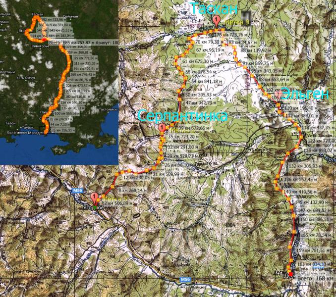 Вот где вы раньше были? Мы прошли этот маршрут 16.07.2017 в одну машину и конечно с гидом.который может рассказать. это было бы намного интересней. Доехали до Ягодного,через Сенокосный,мимо Востока на Серпантинку.С Серпантинки через Хатынгнах направо ( налево дорога на Штурмовой). Вдоль Хатынгнаха и поехали. Дорога хорошая сначала,потом перемывают ручьи.но если нет дождей - все проходимо. В одном месте ручей пошел по дороге - проехали, не глубоко. Приехали на Таскан там человек 5-7 живет. Дорога от Таскана до Эльгена - отличная,лучше федералки. С Эльгена до Дебина по прижимам - дорога не ахти. Ночевали на Колыме. Маршрут 1200км. Заправлялись на Ягодном - бензин 92 -55руб