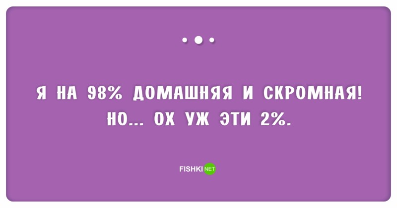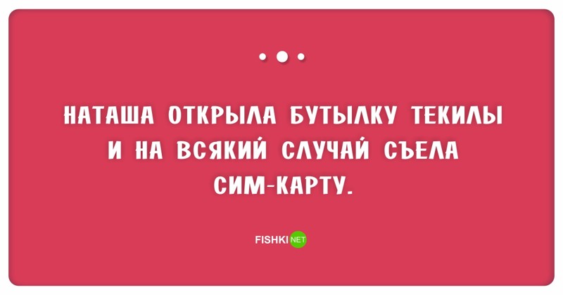 хряпнулась марина мордой об асфальт больше нам по пьяни не крутила сальт *** рассказ о жизни был мой долог к полудню помер мой психолог *** утром в полшестого я кричу ура ибо наконец то грохнул комара *** почему то девки не идут со мной ну и что что нервный и с бензопилой *** нет ещё тоннеля пояснил медбрат это вам рентгена светит аппарат *** не могу я быстро мало времени без меня пока что заберемени *** издавна умею понимать контекст раз на чай приходишь значит будет секс *** не мешайте тане мирно плавать ниц мало ли в фонтане пьяных выпускниц *** не бесил бы лучше понапрасну зайк у меня сегодня жуткий недолайк *** зеркалам не верю врут всегда весы доверяю только палке колбасы *** хуже быть не может думалось илье но вошла оксана в кружевном белье *** посмотрела порно двадцать восемь плюс собиралась замуж а теперь боюсь *** не даются тверк мне танго и фокстрот но зато вожу я классно хоровод *** днём стою в маршрутке рядом с ирой я всё глаза на сиськи фокусируя *** -------------------- |