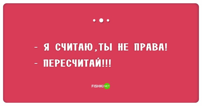 — А ты обещаешь, что не будешь ругаться? — Обещаю! — Ну ладно — семь. — В смысле, я — седьмой? — Не... Ты — четвертый. |