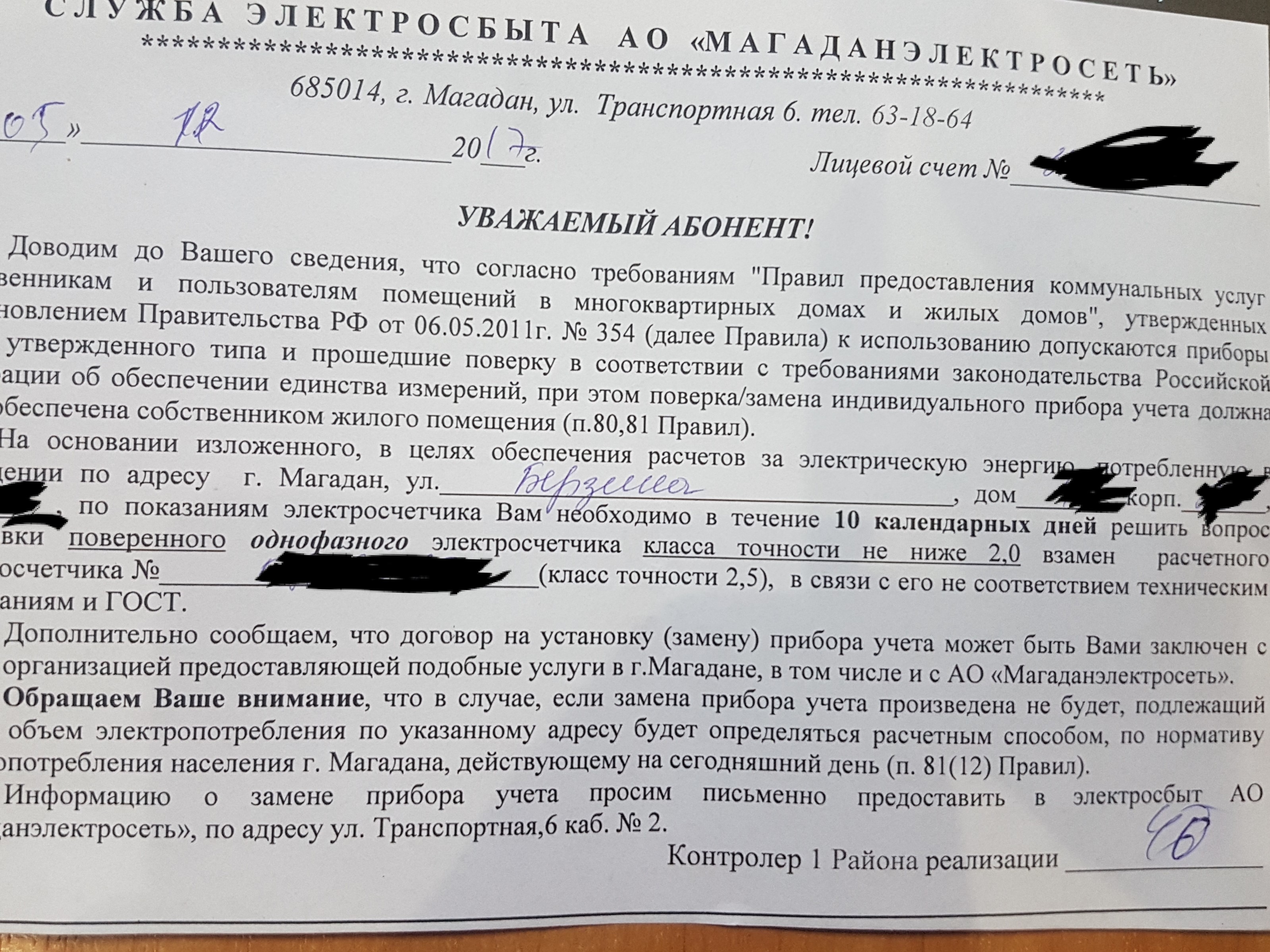 Я знаю, что отдельным товарищам приходило письмо о замене счётчика...