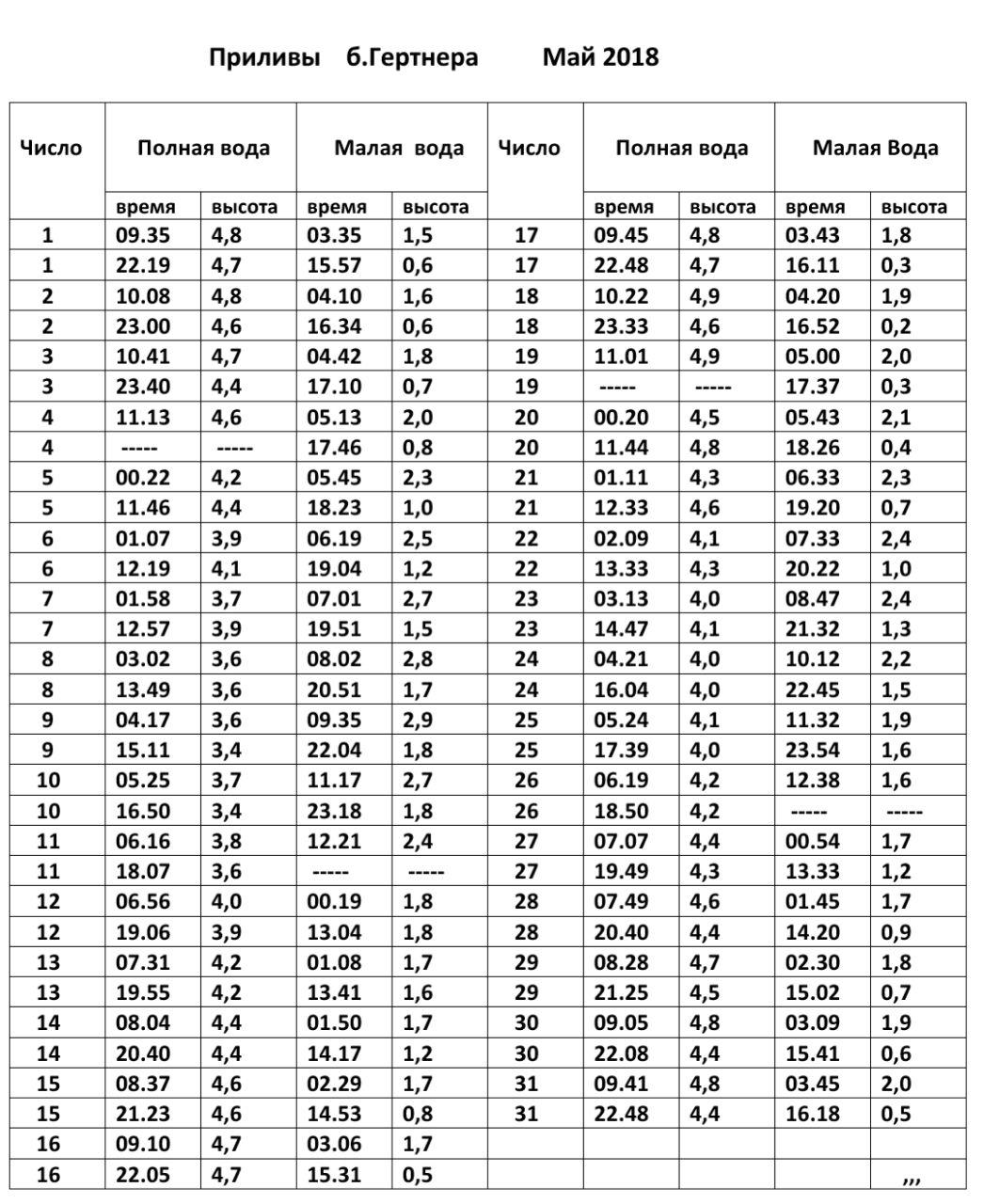Приливы на 2025 год.