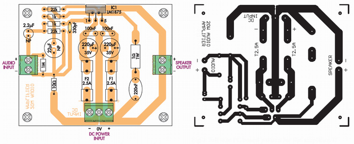 1.Малые емкости по питанию-не гут 2.Отсутствие катушки на выходе-не гут 3.Длинные дорожки питания-не гут 4.Электролитический конденсатор на входе-не гут 5.Электролитический конденсатор (который 22 микрофарада) минимальная емкость по даташиту в цепи обратной связи-не гут 6.Предохранители на этой плате лишние,должны стоять в другом месте-не гут А ведь все это влияет на звук. При этом плата рабочая -------------------- Ремонт радиостанций,усилителей,сабвуферов 89246918246