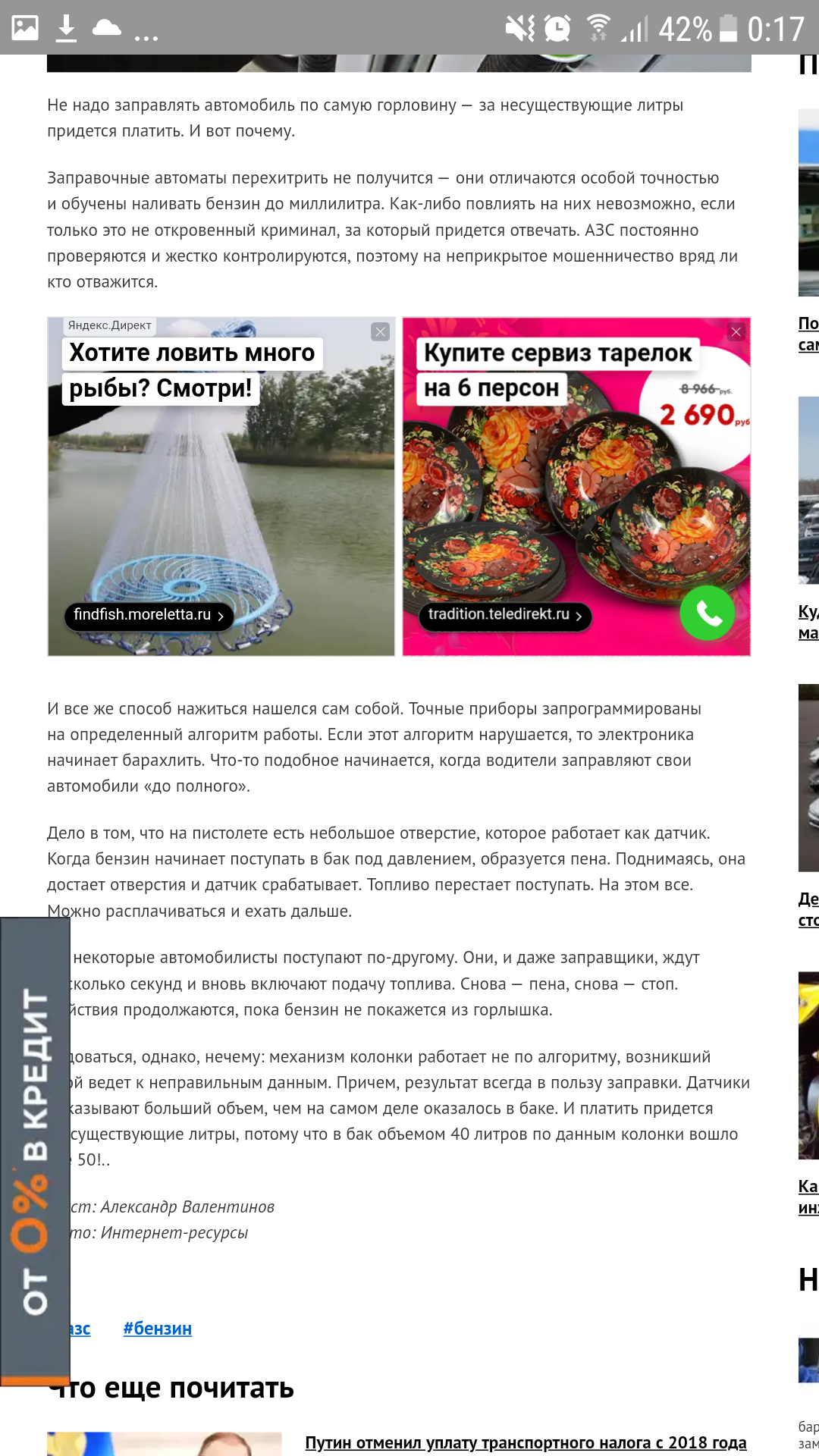 Недолив имеет место быть, факт. Чем больше заправляешь, тем бОльше недолив. Есть смысл заправлять по 10 л. А вообще, зная точно сколько вмещается, к примеру, в 20-ти л. емкость (поставить риску), залить, убедиться, выяснить. Тоже было бы интересно сия процедура, как она делается (имею ввиду вызов контролир. органов, и т.д., и т.п.), потому, как убедившись в недоливе, лишь молча проглотишь этот факт, т.к. оператор не причем, так колонки отстроены, причем ВЕЗДЕ ! Имхо, ничего НЕЛЬЗЯ сделать, таковы рассейские будни А я наоборот знаю, что чем чаще заправляешься, тем чаще у тебя отворовывают.. поэтому всегда бак под горлышко, когда уже бензин вижу. В итоге они никак не "зальют" и не посчитают 68-70 литров в 65-х литровый бак, тем более, что там ещё была пара-тройка литров. -------------------- Квартиры, дома, дачи, участки в Калининграде и области.8-911-072-6Ч9Ч, WhatsApp, Telegram ★ Дзен познается в пробках. |