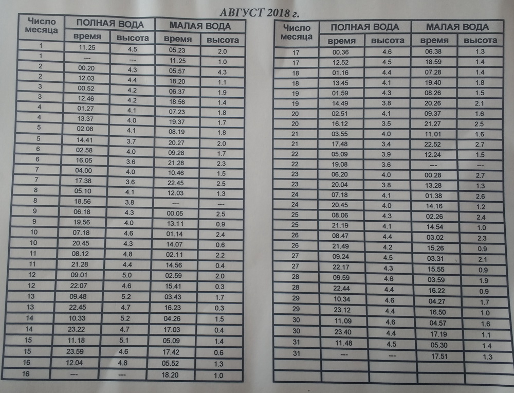 У кого есть таблица приливов на второе полугодие?