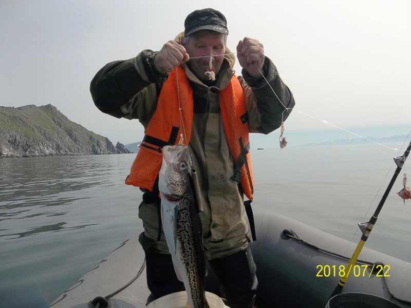 22.07.18г. мыс Чирикова с утра по отливу, ерш средний, треска средняя (глубина 10-16м.)