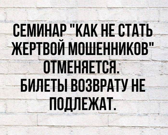 истина No. 1 Влюбленные помогают друг другу раздеться перед сексом Однако после секса, они всегда одеваются самостоятельно. Мораль: В жизни никто не поможет вам, после того как вас трахнули. истина No. 2 Когда дама беременна, друзья трогают её живот и поздравляют. Но, ни один из них не трогает пенис мужчины и говорит: «Хорошая работа». Мораль: Тяжелая работа никогда не ценится. ПЯТЬ ПРАВИЛ ЖИЗНИ: 1. Деньги не могут купить счастье, но удобнее плакать в Мерседесе, чем на велосипеде. 2. Прости своего врага, но запомни имя сволочи. 3. Если вы поможете кому-нибудь в беде, он будет помнить вас, когда будет в беде снова. 4. Многие люди живы только потому, что закон запрещает в них стрелять. 5. Алкоголь не решает никаких проблем, но ведь молоко тоже... и на закуску: Попробуйте только один день говорить правду, и уже к вечеру вы будете безработный, бессемейный, одинокий, всеми проклятый и покинутый инвалид, лежащий в реанимации травматологии ! Сообщение отредактировал lev 43 - 20.10.2018, 12:49 |