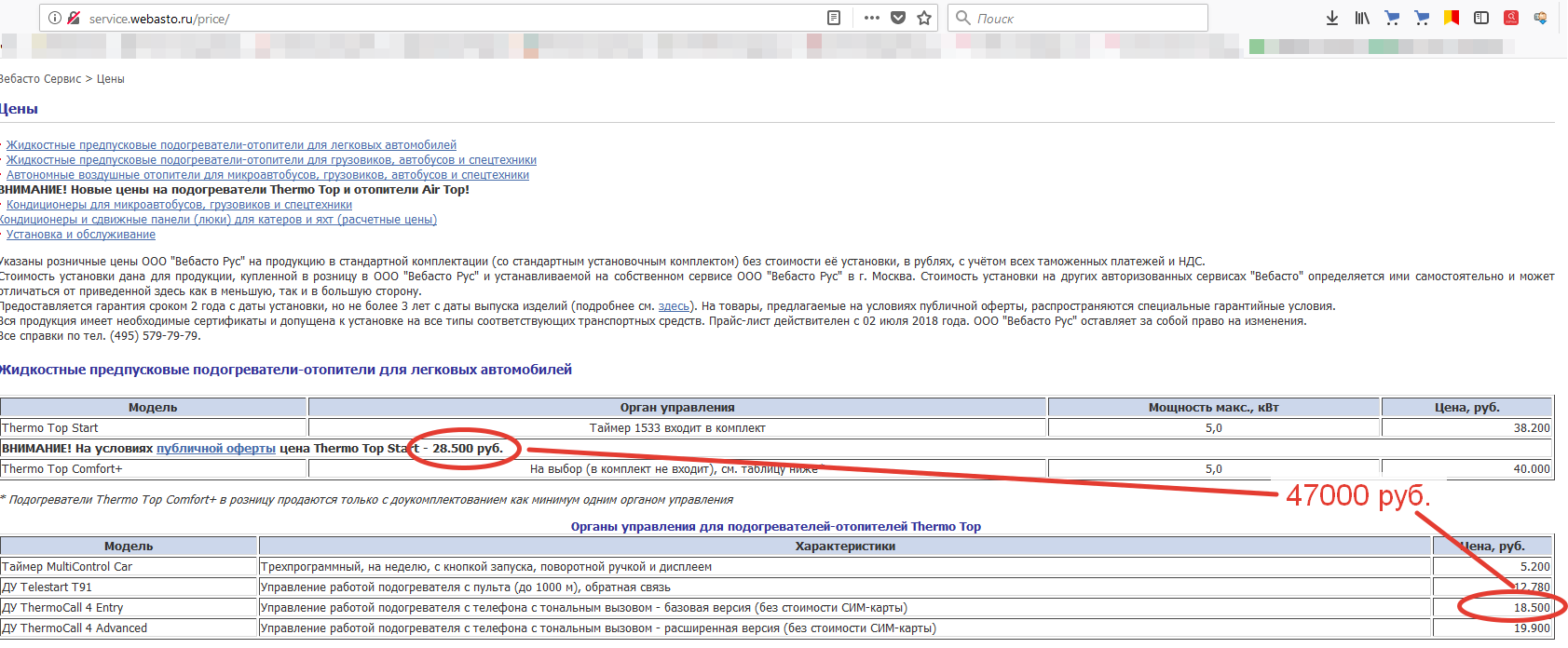 ObiVan: в комплектацию этой Вебасты (также аналогично как и в комплектацию указанного Бинара) входит таймер монтируемый в салон, т.е. условия у обоих одинаковые. Бинар оснащаемый GSM модулем управления - стоит не 25 тысяч рублей - а дороже, поэтому не мутите воду в ступе. На официальном сайте Бинар+Модем цена 28300. На официальном сайте Вебасты Котёл+Модем цена 47000. Сообщение отредактировал ObiVan - 4.12.2018, 13:37 -------------------- Choose what is right, not what is easy. Ordnung und arbeiten. Do the best you can and no regrets.