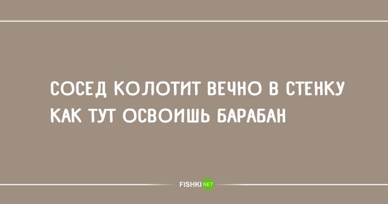 Один сосед орет другому: — Миша! У тебя, когда день рождения? — В мае. Аче? — Я тебе шторы подарю. А то весь дом видит, как у тебя жена делает, минет. — А у тебя когда? — В июне. Аче? — Я тебе бинокль подарю, чтоб ты видел, чья это жена. |