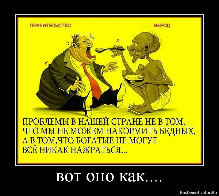 не понимаю я не понимаю трёх вещей: 1. миллиарды с собой в могилу собрались утащить? 2. это менталитет у нас такой? 3. как наша страна до сих пор не схлопнулась? Вот как-то так... -------------------- Имеющий глаза - увидит, имеющий уши - услышит, имеющий мозги - поймёт...