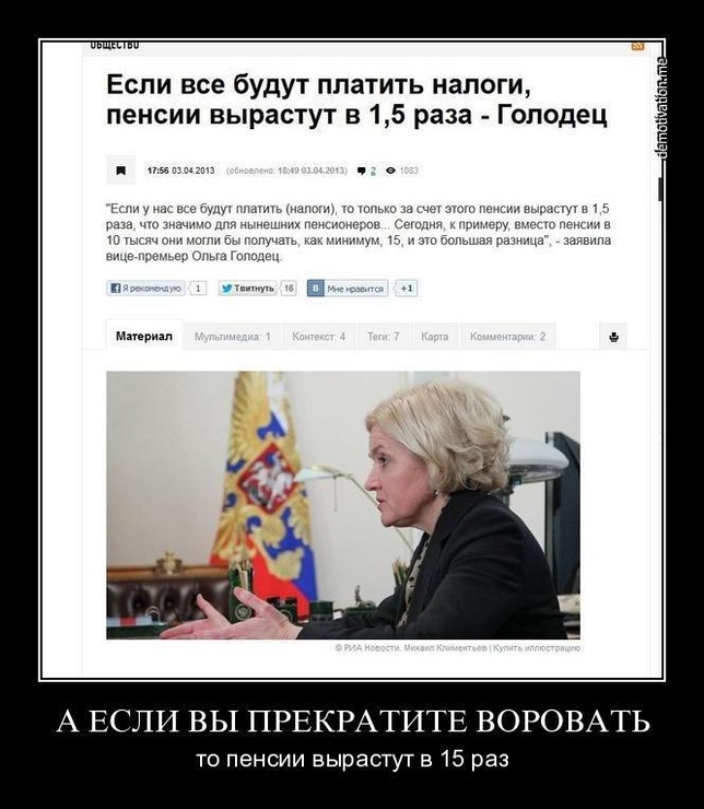 Цитата аудит всё так же кошмарит бухгалтерию бывает обязательный и бывает инициативный аудит. обязательный проводится с периодичностью, если не ошибаюсь, раз в год. инициативный по решению организации - хоть постоянно, при наличии условий. и то и другое планируется организацией. а не какими-то злыми внешними силами. кроме того, не следует путать аудит с контрольно надзорными мероприятиями, проводящимися раз в три года, в рамках 294-ФЗ. так что инициативный аудит - проблемы вашей организации, не? Цитата учительница на уроках обществоведения говорила: "Если у нас на 2 дня перестанут воровать, то на второй же день у нас наступит коммунизм". это 1960-е годы, СССР. 1. в высшей степени маловероятно, что такое могло говориться на школьном уроке ученикам 9-10-х классов в 60-е годы. 2. давать оценку макроэкономики страны на основании чьих то дилетантских оценочных суждений - сомнительное занятие Цитата Вот как-то так.. ну и нафига вы выкладываете тут картинки с высказываниями, к которым президент не имеет отношения/вырванными из контекста? кроме наказания за клевету, уголовный/административный кодексы России предусматривают наказания за оскорбление представителей власти при исполнении им своих должностных обязанностей или в связи с их исполнением. будете потом сокрушаться.. Сообщение отредактировал ZND - 8.1.2019, 9:55 Спасибо! — veter