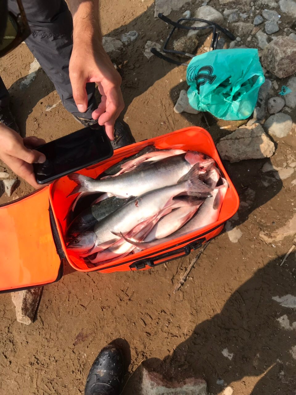 Коллеги, не нужно заходить в реку по пояс! Вы отпугиваете косяки от берега на стремнину, где рыба хуже клюёт. Рыба стремится идти вдоль берега, где течение медленнее и ей легче подниматься вверх. Например сегодня на Оле такая картина была, да впрочем всегда...