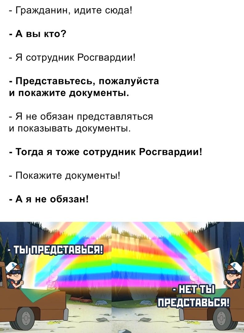 Самая наитупейшая дичь, когда сотрудник росгвардии говорит, что не обязан представляться, это самое дно.. ИМХО, это самое несущественно-печальное в этих событиях. -------------------- «Ад и рай – в небесах», - утверждают ханжи.