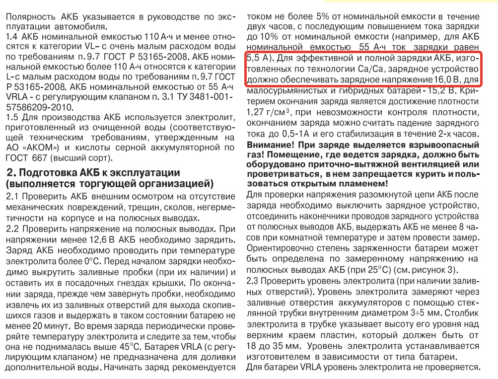 Не заморачивайтесь, Кальциевый аккум "solite" прослужил 16 лет, без заряда в 16В. Сейчас, седьмой год стоит на УАЗе, еще один кальцев.аккум. То же не нюхал 16В. Есть еще один, но ему всего один годик, пока рано о нем говорить. Есть еще два старых аккума которые я регулярно прогоняю-заряжаю, для рыбалок и всяко разно. Так же встречал в сети информацию, что применяя 16В., люди убивали свои акб, Правда или нет не знаю, но я так не делаю. Сульфатация убирается современными электронными-инверторными зарядниками легко. Такие есть на али недорого, там просто импульсный ток, определенной частоты. Ничего волшебного. Но за два года, у разряженного аккума уже посыпалась активная масса(то что намазано на пластинах) Послушайте Гидра, пустите его на грузила. Сейчас зарядники электронные сами заряжают и прекращают заряд. Если батарея лежит без дела, раз в месяц-два, давайте ей заряд. И будет Вам щастье. У меня два зарядника, российский с переключателем до 16В(никогда не пользовался этим) И китаец с режимом десульфатации. Оба автоматы |