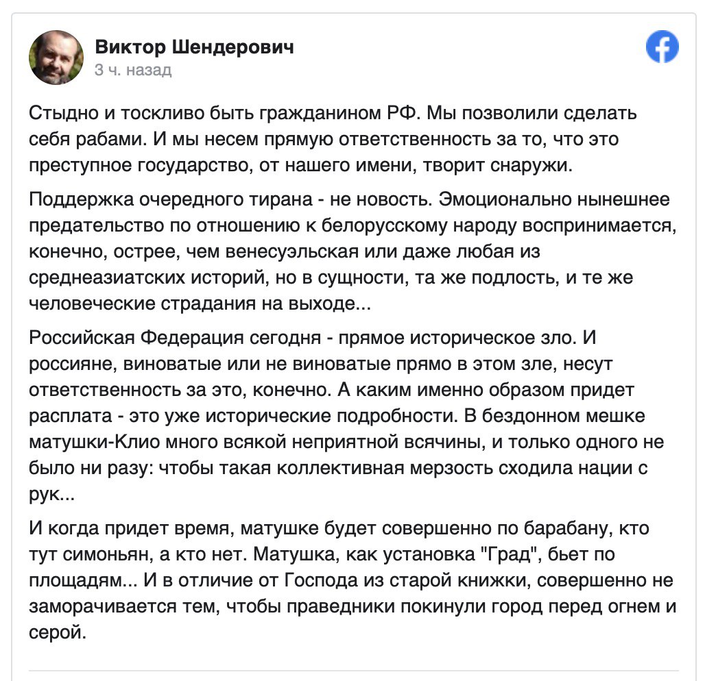 Уже не осталось никого из моих друзей-единомышленников в Президиуме Координационного Совета. Все или в тюрьме, или выброшены за границу. Сегодня взяли, последним, Максима Знака. Сначала у нас похитили страну, похищают лучших из нас. Но вместо вырванных из наших рядов придут сотни других. Восстал не Координационный комитет. Восстала страна. Я хочу повторить то, что говорю всегда. Мы не готовили переворот. Мы хотели не допустить раскола в нашей стране. Мы хотели, чтобы в обществе начался диалог. Лукашенко говорит, что не будет говорить с улицей, а улица – это сотни тысяч людей, которые каждое воскресенье и каждый день выходят на улицу. Это не улица. Это народ. Люди выходят на улицу со своими маленькими детьми, потому что они верят, что они победят. Еще я хочу обратиться к русской интеллигенции, назовем это так по-старому обычаю. Почему вы молчите? Мы слышим только редкие голоса в поддержку. Почему вы молчите, когда видите, как растаптывают маленький, гордый народ? Мы все еще ваши братья. А своему народу я хочу сказать, что я люблю его. Я горжусь им. Вот опять кто-то неизвестный звонит в дверь… Источник: ссылка доступна только зарегистрированным P.S. Светлана Алексиевич — последняя из семи членов президиума Координационного совета, кто еще не арестован и не за границей. Представители дипломатических миссий ряда европейских стран собрались в минской квартире Нобелевского лауреата Светланы Алексиевич, чтобы защитить ее от возможного ареста, сообщает «Европейская правда». Опубликовано совместное фото дипломатов с писательницей с указанием, что первой его обнародовала министр иностранных дел Швеции Анн Линде. «Преследование, аресты и насильственное выдворение оппозиции в Беларуси является серьезным нарушением права на мирный протест белорусским режимом. Счастлива поделиться этим фото, только что снятым в Минске — Светлана Алексиевич рядом с европейскими дипломатами, среди которых и дипломат Швеции», — написала Анн Линде. Заместитель посла Литвы в Беларуси Аста Андрияускене уточнила, что у Светланы Алексиевич собрались послы Литвы, Германии, Польши, Швеции, Словакии и Чехии. По словам Андрияускене, первыми приехали посол Литвы Андрюс Пулокас и она — сразу после сообщения Алексиевич, что к ней пытаются попасть неизвестные. «Мы позвали других послов ЕС и приехали послы Германии, Польши, Швеции, Словакии, Чехии. Сейчас думаем, что делать дальше», — сообщила заместитель литовского посла. По свидетельству иностранных дипломатов, Алексиевич «очень конкретно дала понять, что не хочет уезжать из страны, что хочет остаться с людьми в Беларуси, хотя у нее много возможностей уехать». Источник: ссылка доступна только зарегистрированным -------------------- «Ад и рай – в небесах», - утверждают ханжи.