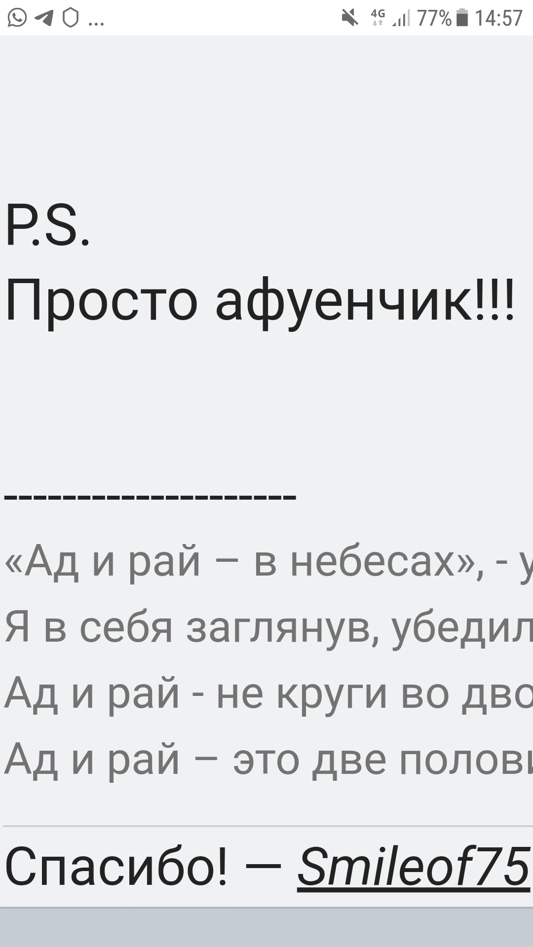 Я в себя заглянув, убедился во лжи: Ад и рай - не круги во дворце мирозданья, Ад и рай – это две половинки души. |