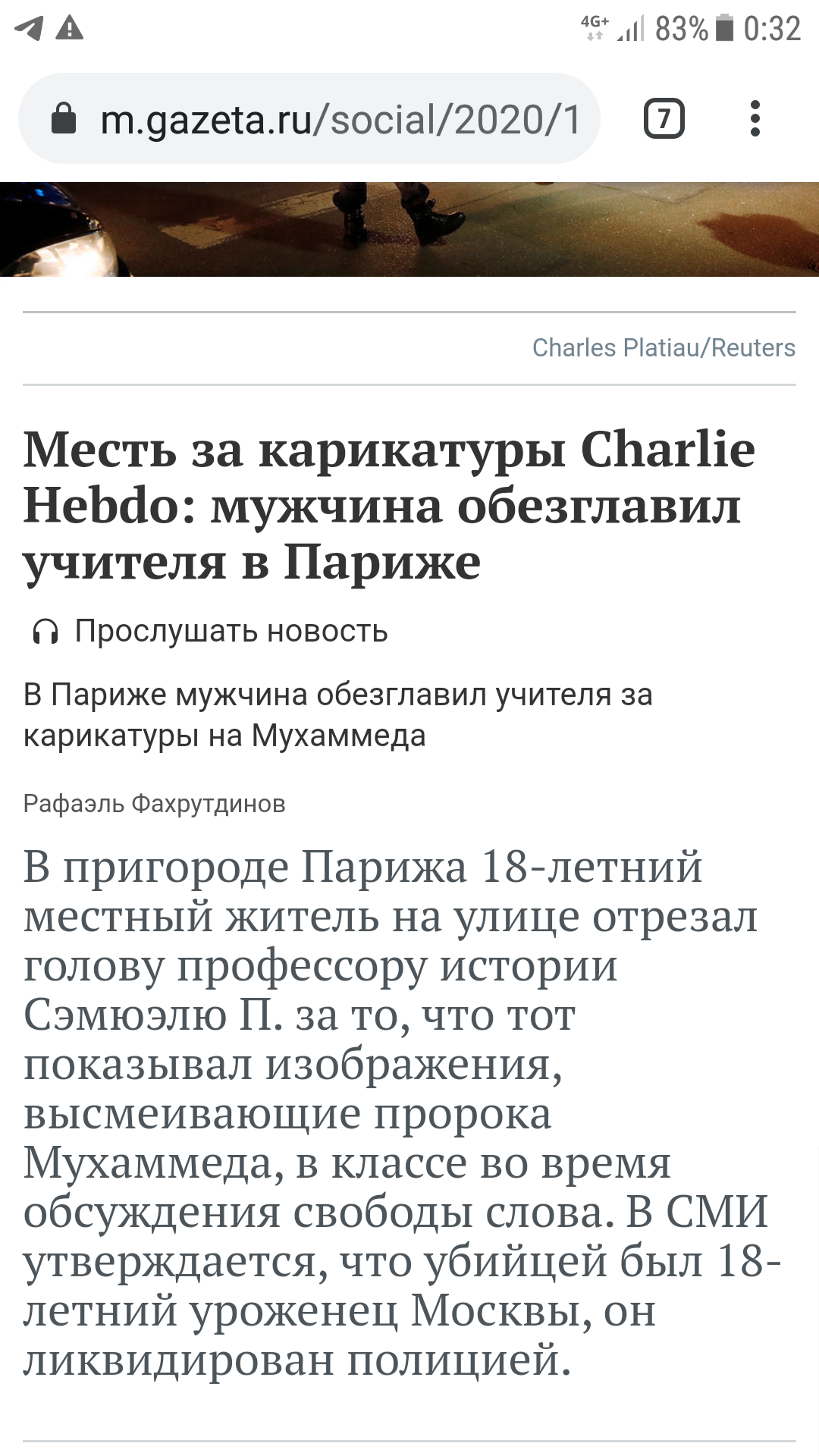 Цитата где же подвох? подвох в том, что нельзя проецировать прочитанное на местечковую действительность. нет никакого "... помимо основной работы заниматься педофильскими делами". люди подобного уровня могут стоять во главе чего угодно и ничем не заниматься. важна публичность и рейтинги. ну, а что там вылазит побочно - так, издержки производства. Цитата к теме о цензуре. "Публичное убийство преподавателя в коммуне Конфлан-Сент-Онорин под Парижем является террористической атакой, заявил 16 октября президент Франции Эммануэль Макрон. По его словам, погибший был убит за то, что учил детей «свободе». эээ.... как там из классики: «Свобода одного человека заканчивается там, где начинается свобода другого» М. Бакунин рука москвы... опять санкции наложат... Сообщение отредактировал ZND - 17.10.2020, 10:28 |