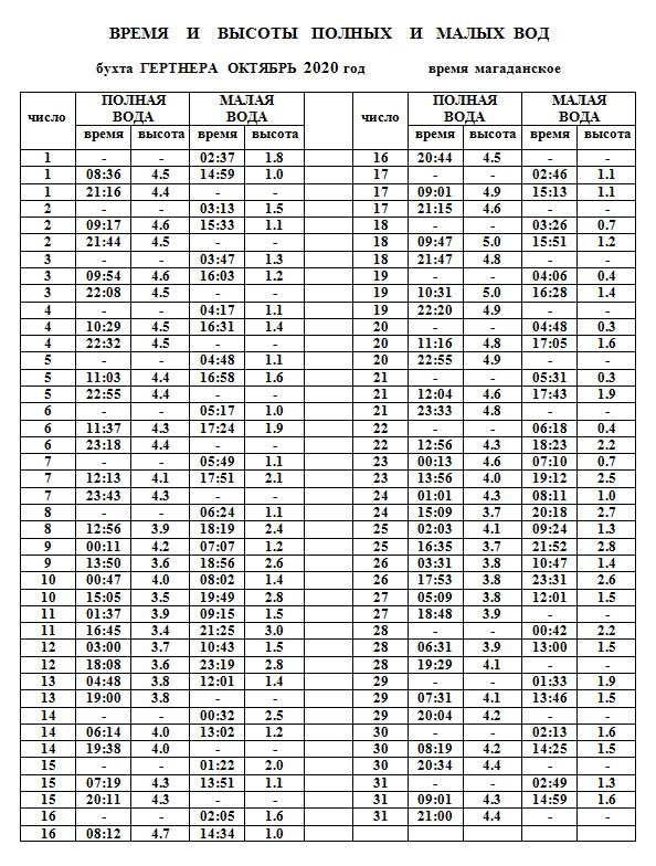 Приливы на 2025 год.
