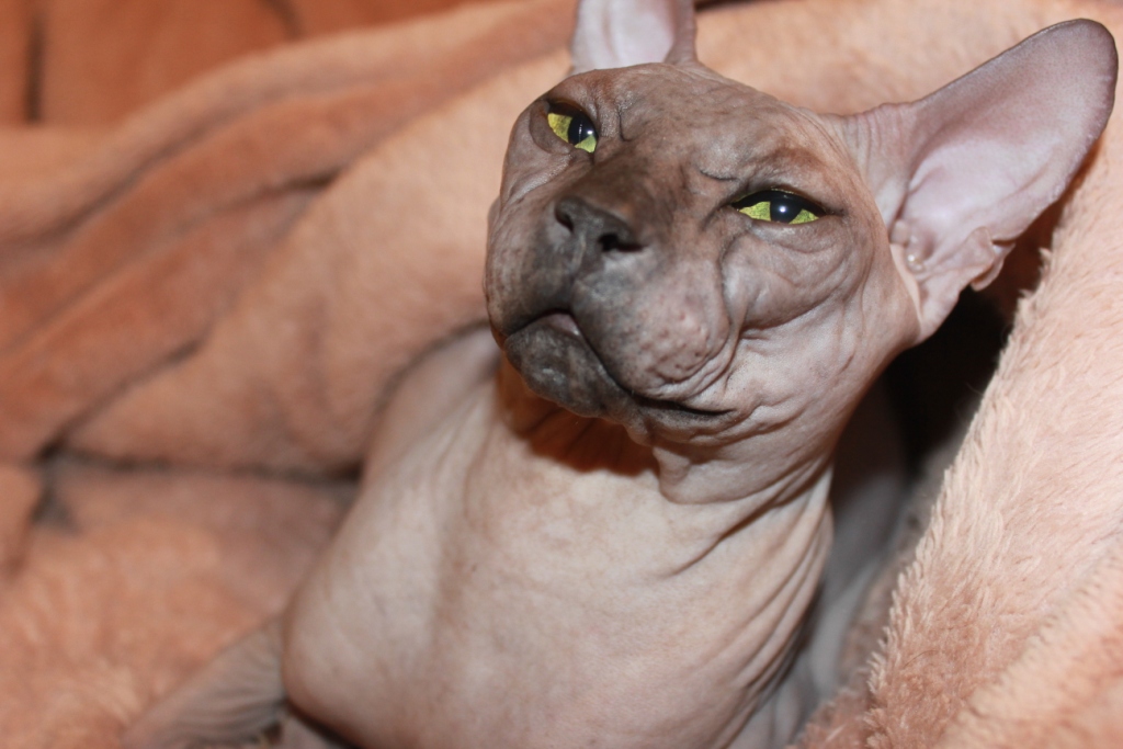Сфинксы разные бывают и не все они полностью лысые!Есть лысики, есть велюровые, есть браши)))Мохнатость и от возраста и даже от времени года зависеть может