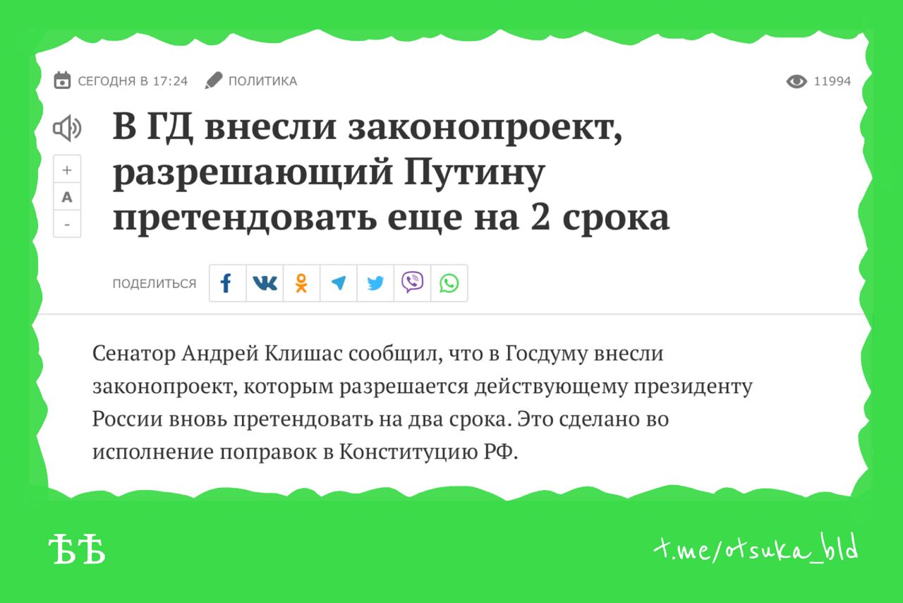 ▪️ приравнять незарегистрированные политические НКО с иностранным финансированием к иностранным агентам ▪️ признавать иностранными агентами людей, получающих зарубежное финансирование на политическую деятельность или сбор сведений в военно-технической сфере ▪️ добавить в избирательное законодательство понятие кандидата, выполняющего функции иностранного агента ▪️ запретить иностранным агентам занимать госдолжности -------------------- Пейте чай и всё пройдёт......
